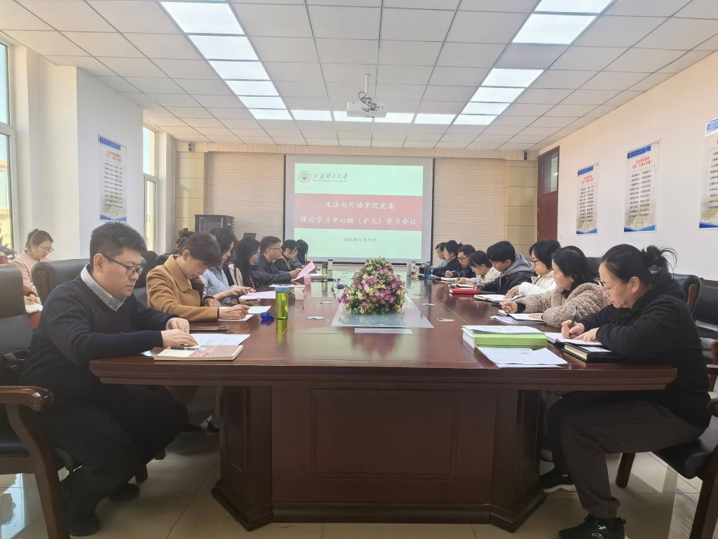 11月29日,pg娱乐电子游戏官网入口党委在学院会议室召开理论学习中心组(扩大)学习会议。学院党政班子成员、各支部书记以及系部中心所主任、三办主任参加会议,会议特邀经济与管理学院党委书记闫新同志列席旁听。会议由院党委书记申晓东同志主持。
