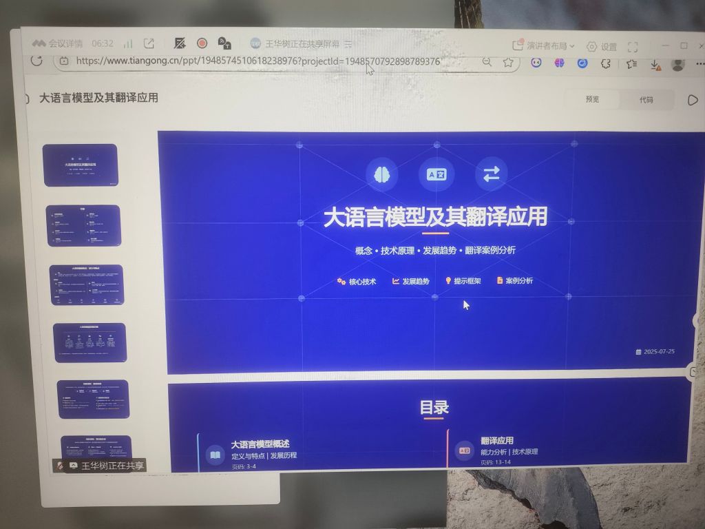 张芳老师参加2025创新实践教学与大模型技术应用培训班,深感AI与教育融合的浪潮已至。她表示,“本次培训不仅刷新了我对技术边界的认知,更提供了将大模型落地课堂教学实践的各个环节的实用路径。从教学材料的收集、教学PPT的制作到课堂教学各个环节与大模型的结合都让我受益匪浅。尤其是大语言模型及其翻译应用的讲座中主讲人提供了多个翻译工具及PPT制作网站,运用大量翻译案例对于智能体(AI+目标驱动+自主行动)理念,提示词工程进行了详细阐述,对于翻译实践和教学有着巨大的实用价值。这种理念与工具的双重革新,让我对未来的教学实践充满了全新的期待与信心。”
