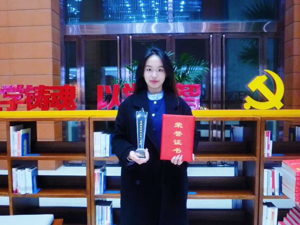 在学习上,她坚持学思结合,大一学年加权成绩位列专业第五,综测连续两学期排名专业第一。连续两次获得校级一等奖学金,还获得了2024年度高途坦途计划“优秀学生干部”奖学金,多次荣获“学业优秀个人”“公益服务优秀个人”“创新创业优秀个人”等称号,并且被评为校级优秀共青团干部、院级三好学生和十佳综合素质标兵。除此之外,她还注重理论与实践相结合,在法院等实践单位展开实习,不断提高自己的综合能力。