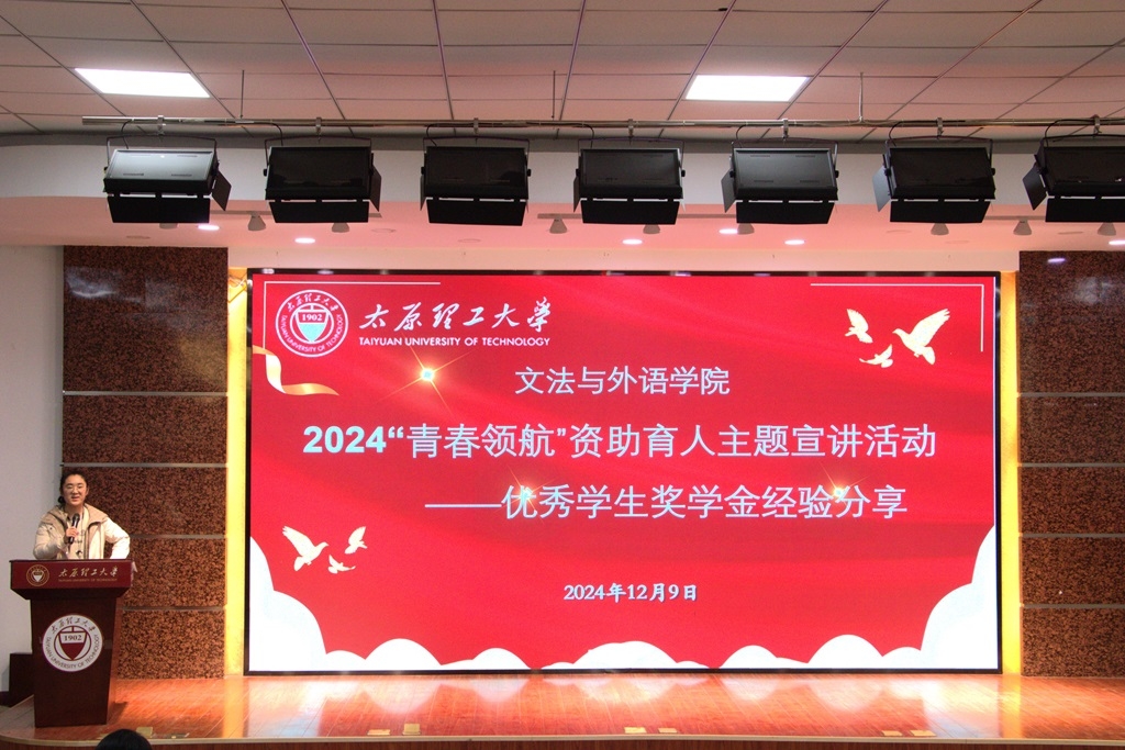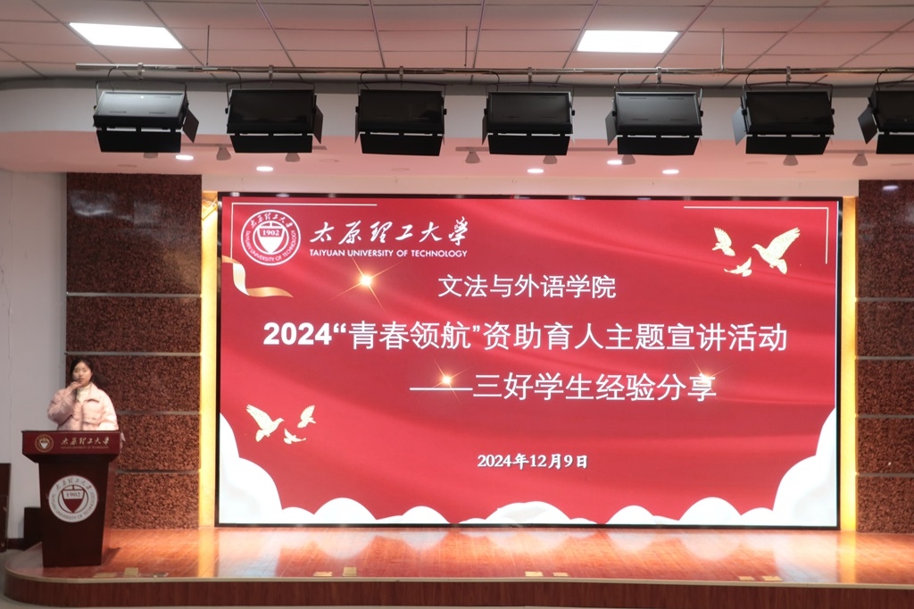 为进一步彰显资助育人的激励作用,落实立德树人根本任务,切实推动学院学风建设,引导学生树立营造积极学习、奋发向上的良好学风,12月9日中午,文法与外语“榜样领航”第三期分享会于学院北楼一层报告厅举行。本次分享会邀请2023-2024年度三好学生、优秀学生干部、优秀学生奖学金获得者以及勤工助学优秀学生代表共四名优秀学子主讲。