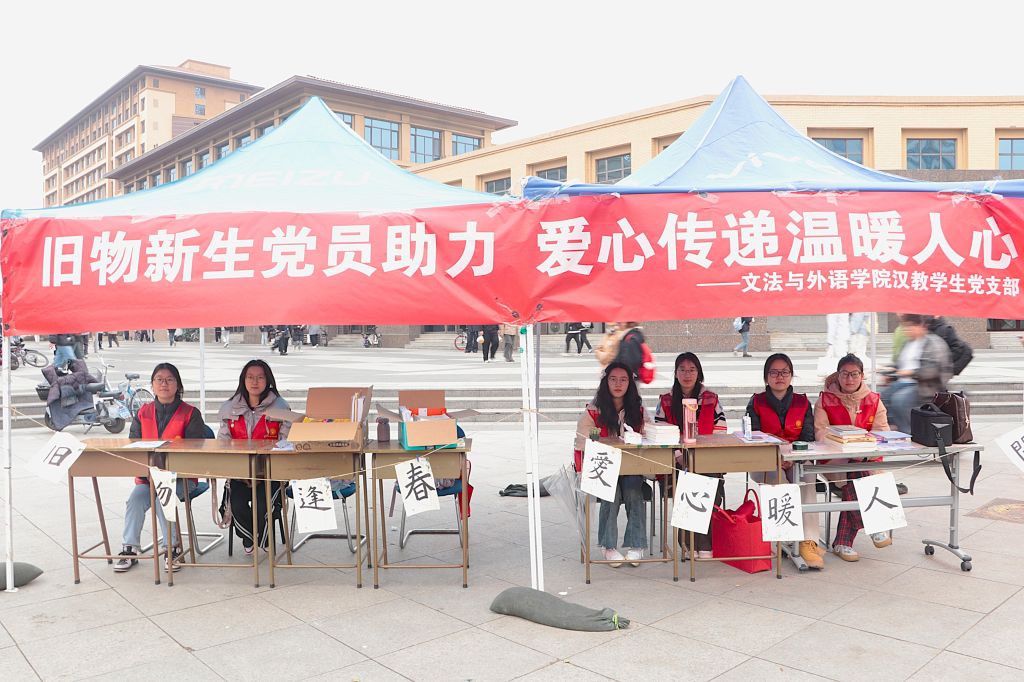 三月春光好,旧物暖人心。为传承发扬雷锋无私奉献的高尚品质以及“奉献、友爱、互助、进步”的志愿服务精神,3月14日,pg娱乐电子游戏官网入口汉教学生党支部积极响应号召,于西区小广场面向静雅社区师生开展了“旧物新生党员助力,爱心传递温暖人心”爱心捐赠活动。