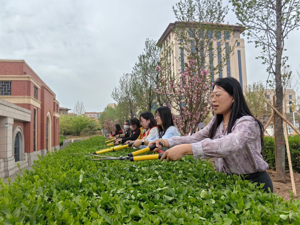 活动伊始,学校后勤保障部的工作人员为同学们进行了细致的劳动技能培训。从绿篱修剪的角度把控、力度掌握,到铁锹翻土的正确姿势、深度要求,再到树木与绿篱浇水的频率和水量标准,每一个环节都讲解得深入浅出。同学们全神贯注聆听,认真记录要点,积极提问互动,很快便掌握了劳动技巧,为后续实践活动的顺利开展奠定了坚实基础。