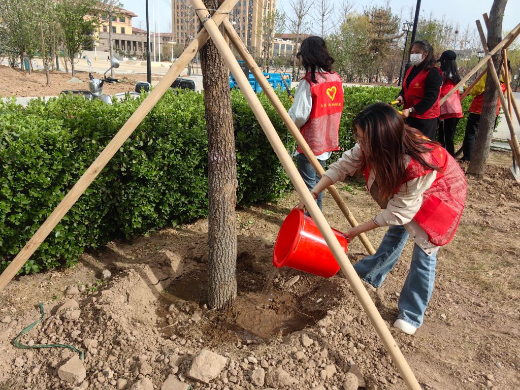 培训结束后,劳动实践正式拉开帷幕。同学们迅速投入到紧张而有序的工作中,劳动现场呈现出一派热火朝天的繁忙景象。修剪绿篱的同学们手持专业工具,眼神专注,动作娴熟,他们沿着绿篱的轮廓,一丝不苟地修剪着每一处枝叶,不一会儿,原本参差不齐的绿篱便变得整齐划一、棱角分明;负责翻土的同学们紧握铁锹,用力插入土壤,再奋力将土块翻起,大家干劲十足,让沉睡的土地焕发出新的生机;浇水的同学们则提着水桶,穿梭在树木与绿篱之间,细心地为每一株植物补充水分,确保它们能够茁壮成长。大家分工明确、密切配合,充分展现了我院党员队伍团结协作、吃苦耐劳的优良作风。